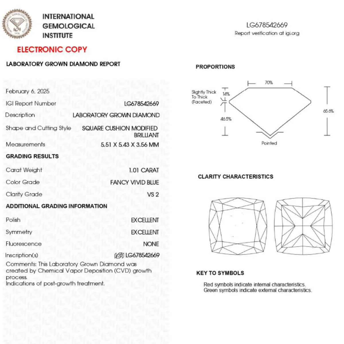 1.0-3.0ct Blue Cushion Lab Grown Diamonds VS IGI Certificate Lab Created Diamonds Fancy Blue Diamonds For Lover Gifts - Blue Cushion Cut 1.0ct intense VS2