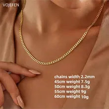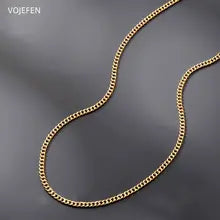 VOJEFEN 14K Solid Gold Necklace Genuine 585 Pure Gold Cuban Chains Luxury High Quality Designer Jewelry Women/Mens Accessories