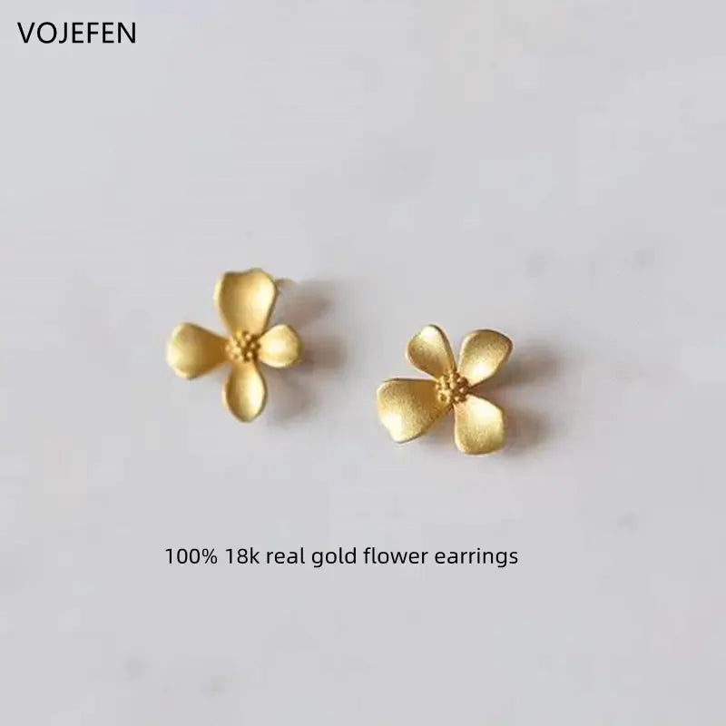 VOJEFEN 18K Flower Stud Earrings Fine Jewelery Women Luxury Ear Piercing Original AU750 Real Gold Small Earings Designer Jewelry