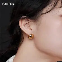 VOJEFEN 18k Gold Balls Hoops Earrings Jewelry AU750 Real Gold Earings Jewelry Golden Earring for Female Luxury Quality Piercing