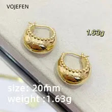 VOJEFEN 18K Gold Basket Earrings Jewelry Genuine AU750 Pure Gold Hanging Hoops Jewelry Elegant Earring Luxury Fine Trend Jewel