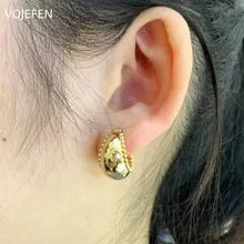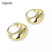 VOJEFEN, Real 18k Gold Earrings, High Polished Oval, Hoops Women, Large Twisted Golden Earring for Female,