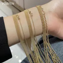 VOJEFEN 18k Gold Beads Chains Necklaces For Female AU750 Beads Choker Genuine Pure Gold Jewelry Luxury 18 Inches Necklaces