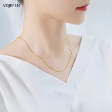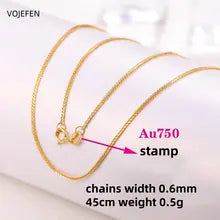 VOJEFEN 18k Gold Chopin Necklaces Jewelry AU750 Real Gold Rope Chains Luxury Choker Necks Yellow/Rose/White Jewellery Certified