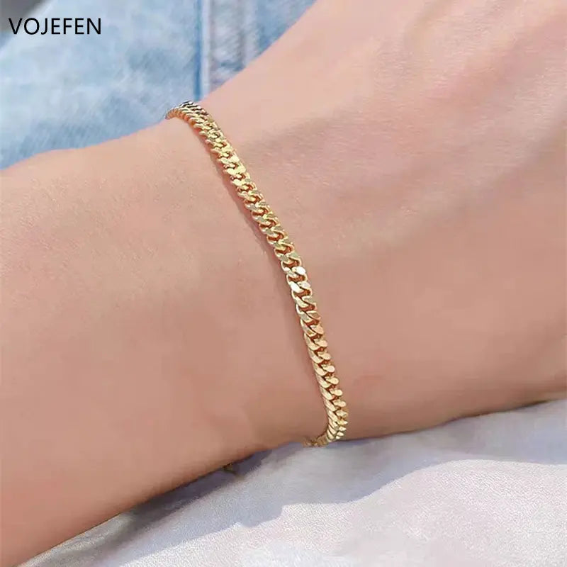 VOJEFEN 18K Gold Cuban Bracelet Fine Jewelry Luxury Original AU750 Pure Gold Cuban Chain For Women/Men Brand Bracelet Jewellery