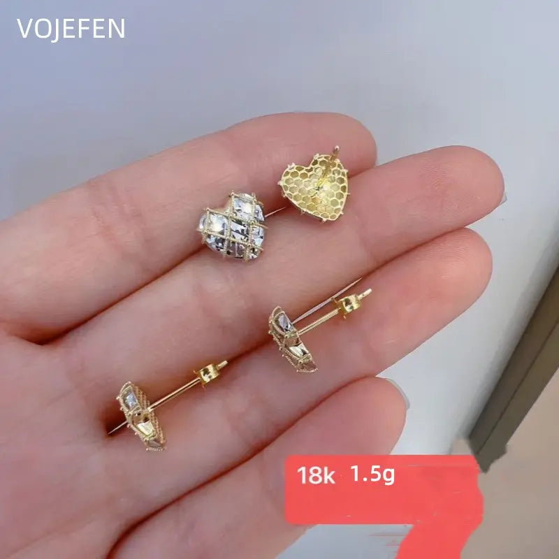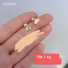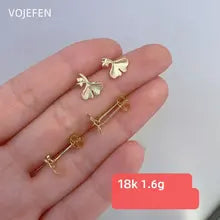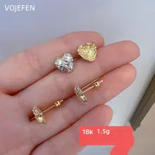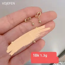 VOJEFEN 1 Pairs 18K Gold Drop Earrings Jewelry AU750 Ear Piercing Stud Earrings Women Original Earing Fine Jewellery Luxury