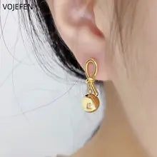 18K Gold Drop Earrings - Luxury Vintage Real Gold Studs for Engagement