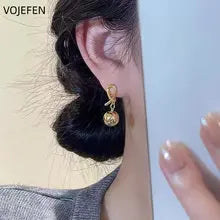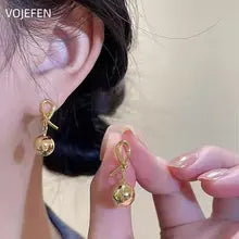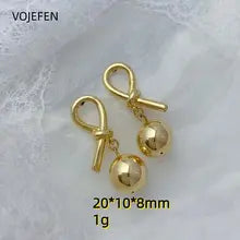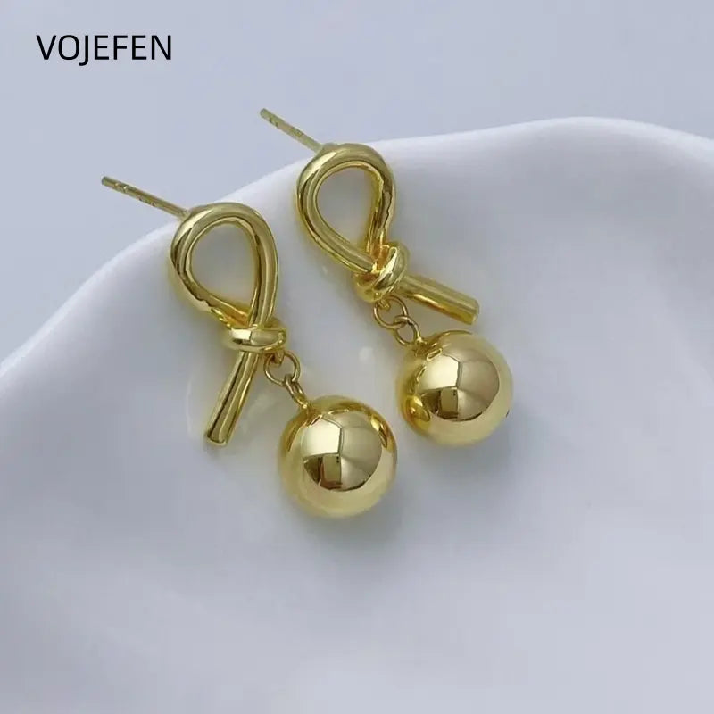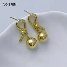 VOJEFEN 18K Gold Balls Drop Earrings AU750 Real Gold Ear Piercing Stud Earrings Jewelry Luxury High Quality Vintage Original Elegant Certifid
