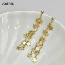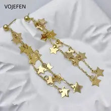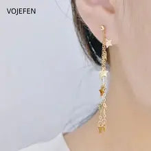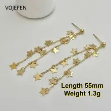 VOJEFEN 18K Gold Drop Hoops Earrings Jewelry Genuine AU750 Pentagram Tassel Chain Luxury Designer Earrings Gifts Jewelry Trends 2026