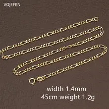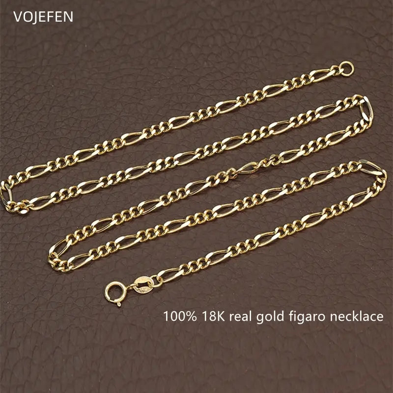 VOJEFEN AU750 Gold Figaro Necklace High Quality 18 Karate Chains Choker Fashion Luxury Brands Genuine Jewelry Womens Wholesale