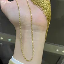 VOJEFEN, 18 K Real Gold Woman Jewelry, Figaro Chains Necklace, Fashion Genuine, Cuban Link Chain Man, Neck 2023, Luxury Quality Choker