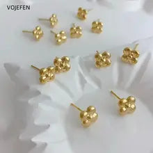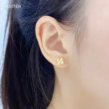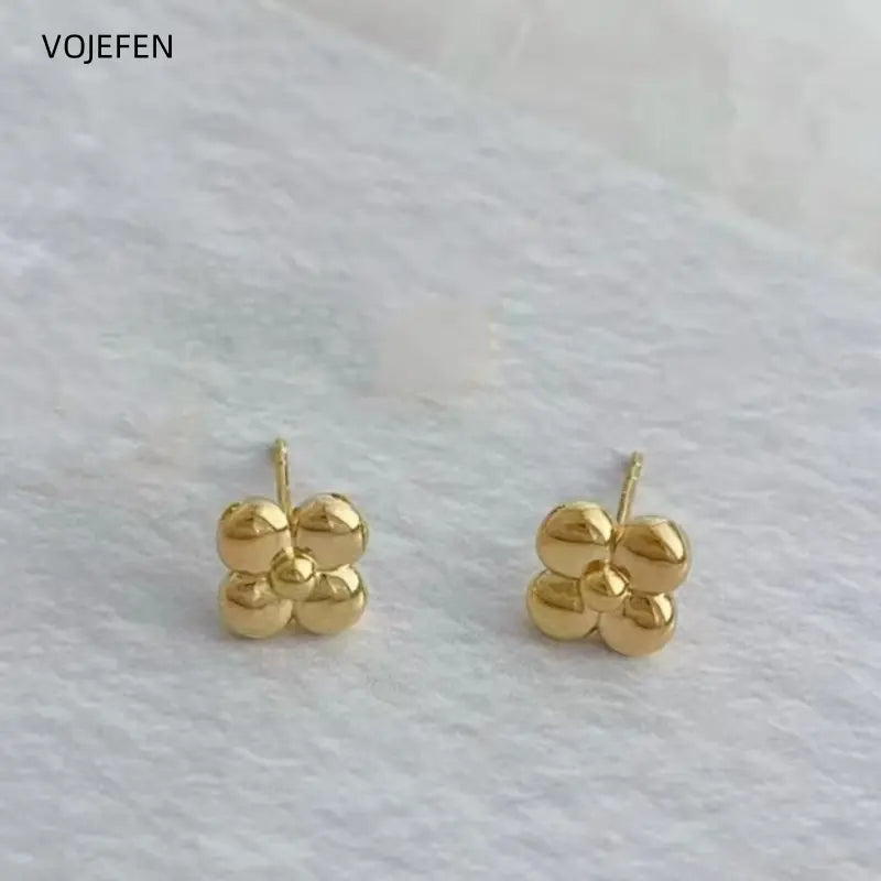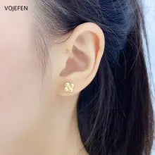 VOJEFEN 18k Gold Flower Stud Earrings Jewellery Yellow/White Original Au750 Pure Gold Jewelry Luxury Piercing Earrings Trend