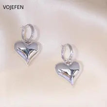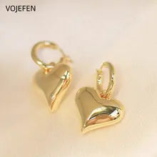 18K Gold ,Hanging Heart Hoops Earrings, Jewelry ,Genuine