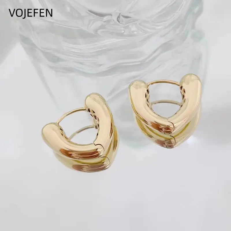 VOJEFEN, Gold 18k Original, Earings Hoops Women Men, Trend 2023 New, Luxury Round Earring, Korean Jewelry Style, Circle Earrings Gift
