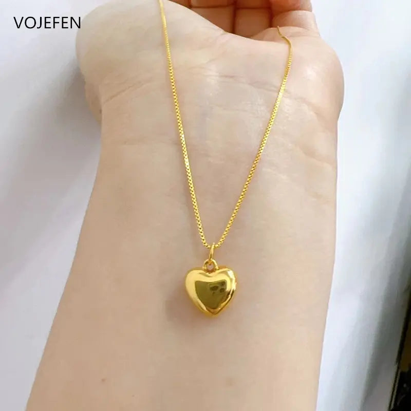 VOJEFEN Original 18k Gold Earrings / Necklace Jewelry Sets For Women Heart Pendant Necklace Box Chains Luxury Fashion Jewellery