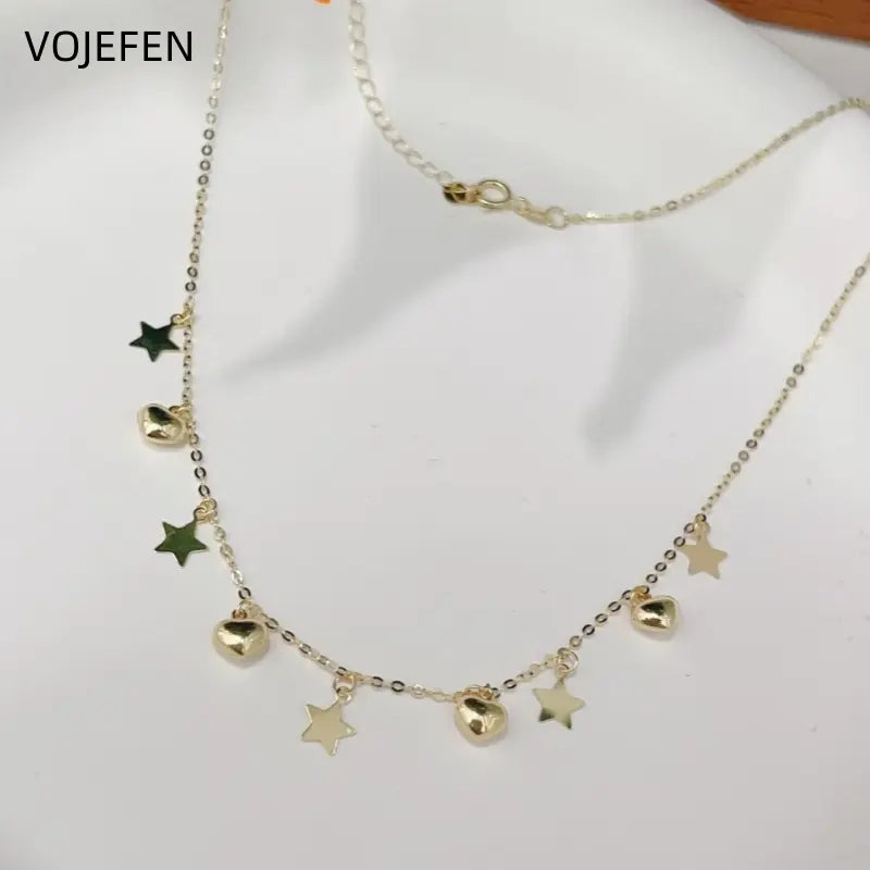 18K Gold Heart Star Pendant Necklace - Luxury Initial Choker Jewelry