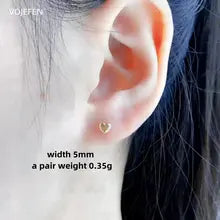 VOJEFEN 18K Gold Heart Stud Earrings Fine Jewelry AU750 Real Gold Mini Ear Piercing Original Love Gift Luxury Jewelery Wholesale
