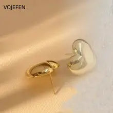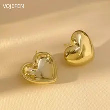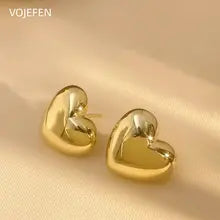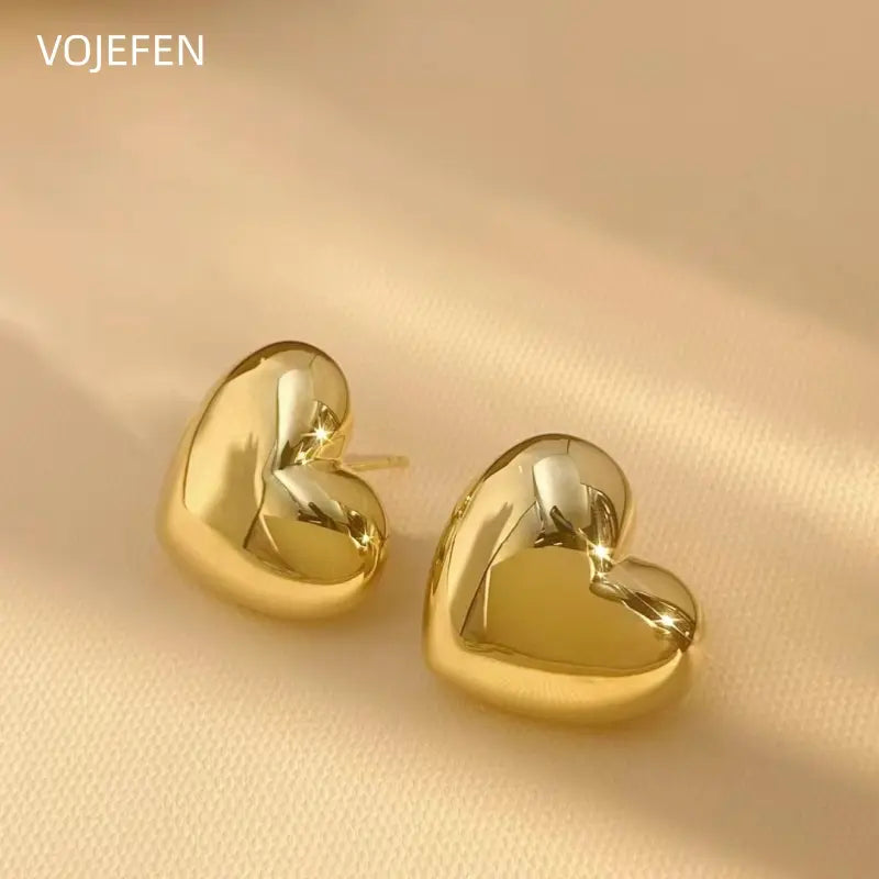 VOJEFEN, Original 18k Gold, Stud Earrings Heart, Fashion Jewelry, Women's Accessories, Luxury Gift, Modern Real Gold Earings Jewelery