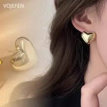 VOJEFEN 18K Gold Big Heart Stud Earrings Genuine AU750 Real Gold Piercing Ear Luxury Earing Jewellery Vintage Gift Certified