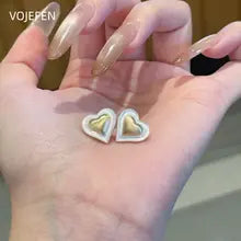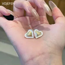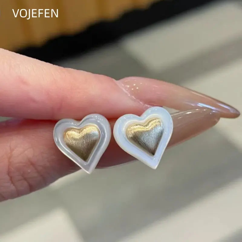 VOJEFEN, Original 18k Gold, Stud Earrings Heart, Fashion Jewelry, Women's Accessories, Luxury Gift, Modern Real Gold Earings Jewelery
