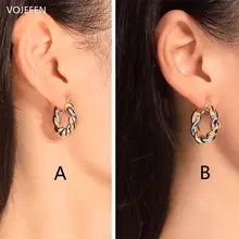 VOJEFEN, Real 18k Gold Earrings, High Polished Oval, Hoops Women, Large Twisted Golden Earring for Female,