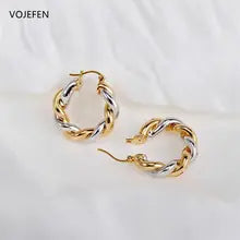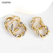 VOJEFEN 18k Gold Earrings Hoops Jewelry Original Au750 White/Yellow Gold Rope Rings Luxury Drop Earrings Designer Jewellery