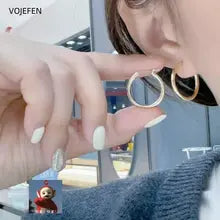 VOJEFEN, Gold 18k Original, Earings Hoops Women Men, Trend 2023 New, Luxury Round Earring, Korean Jewelry Style, Circle Earrings Gift
