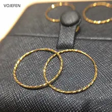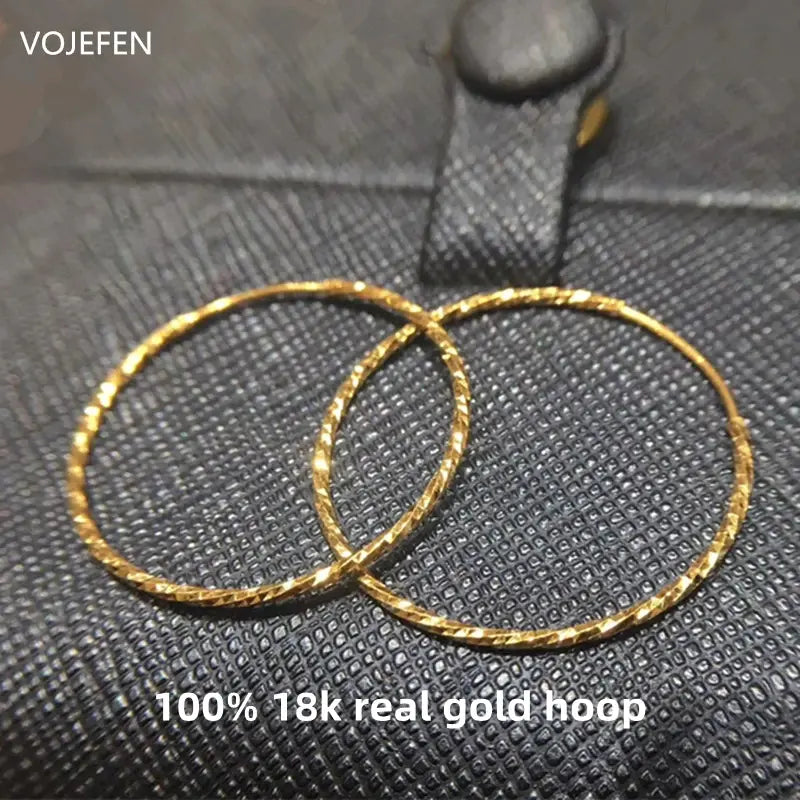 VOJEFEN 18 K Pure Gold Earring Hoops Women Original Shiny Pattern Round Large Earrings Charms New In Earing Circle Fine Jewelry