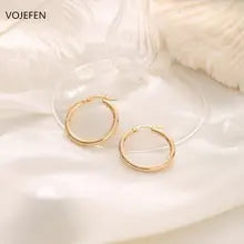 VOJEFEN, Gold 18k Original, Earings Hoops Women Men, Trend 2023 New, Luxury Round Earring, Korean Jewelry Style, Circle Earrings Gift
