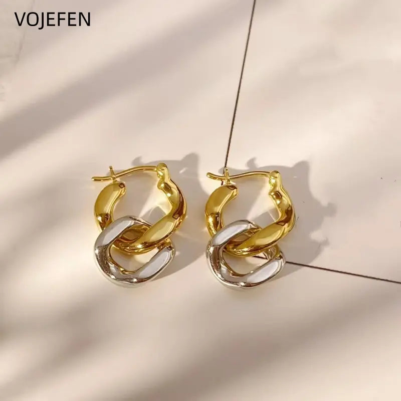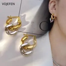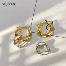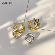 VOJEFEN ,18k Gold Hoops, AU750 ,Original Earings ,Shiny, V ,Women/Men Trend 2024, Luxury Earring ,Korean Jewelry, Style Circle ,Wholesale