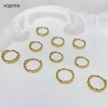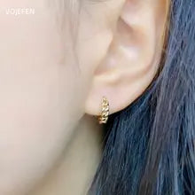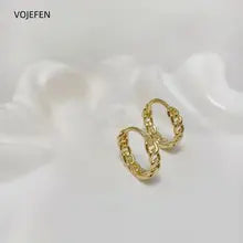 VOJEFEN, Original 18 K Pure Gold, Earrings Hoops, Wave Pattern Round, Golden Vintage, Women Fine Jewelry,