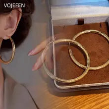 VOJEFEN 18k Big Gold Hoops Earrings Elegant AU750 Real Gold Large Rings Jewelry Thickened Earring Luxury Designer Piercing