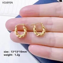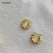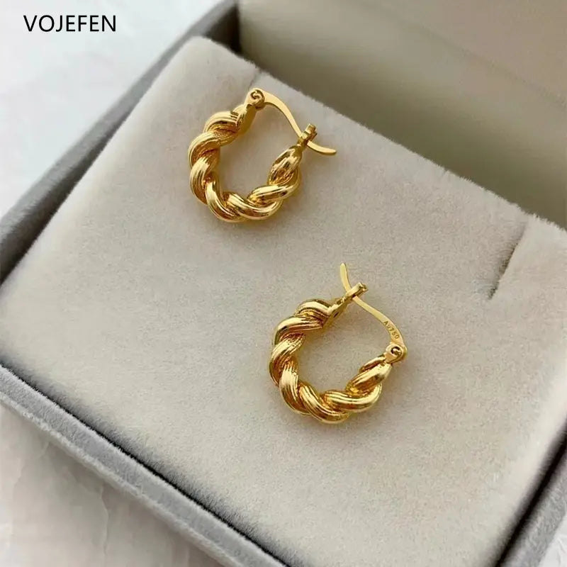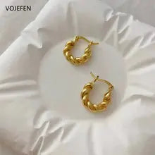 VOJEFEN 18k Gold Hoops Earrings Women Genuine AU750 Real Gold Rope Earring Fine Jewelry Luxury Accessories Certifid 2025 Trend