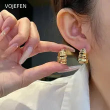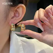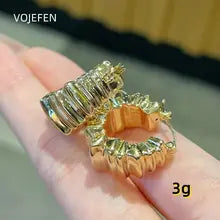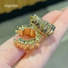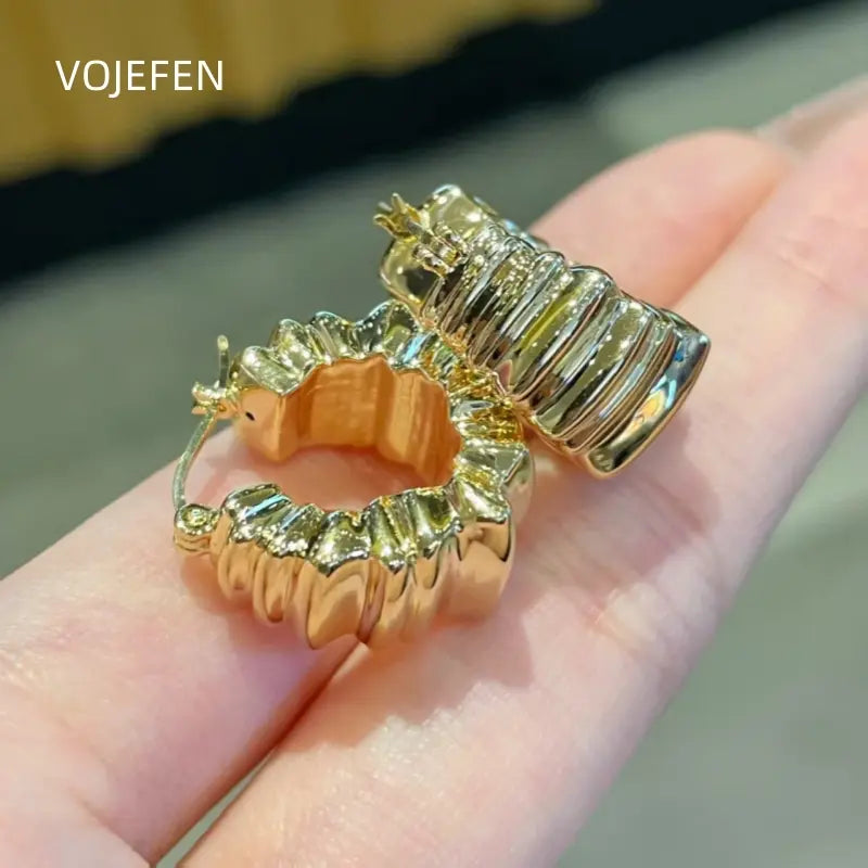 VOJEFEN AU750 Hoops Earrings Jewelry Romantic Earing Original 18K Gold Rope Bold Hoops Thicker Fine Jewel Luxury Christmas Gift Certified