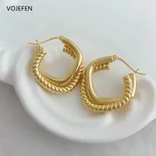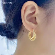 VOJEFEN ,18K Real Gold Earrings ,AU750 Pure Gold ,Hoops ,Rope, Jewelry For Women ,Thickened Earring, Jewel ,Luxury, Fashion ,Wholesale