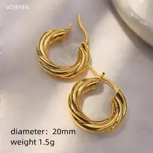 VOJEFEN, Real 18k Gold Earrings, High Polished Oval, Hoops Women, Large Twisted Golden Earring for Female,