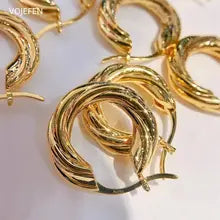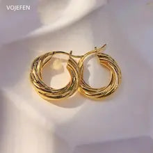 VOJEFEN 18k Gold Hoops Earrings AU750 Real Gold Rope Rings Jewelry Thickened Twisted Golden Earring for Female Luxury Piercing