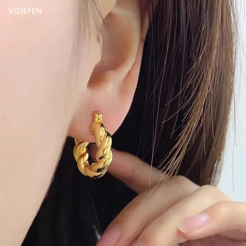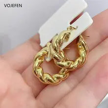 VOJEFEN 18k Gold Hoops Earring Jewellery Vintage AU750 Pure Gold Rope Rings Hoop Designer Luxury Ear Piercing Stud Earrings
