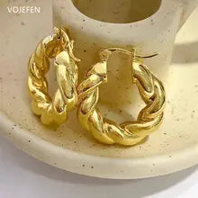 VOJEFEN, Original 18K Gold Earrings, Hoops For Women, 3CM Rounds Rings, Luxury Goods, Fashion Jewelry,