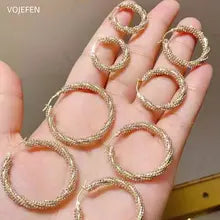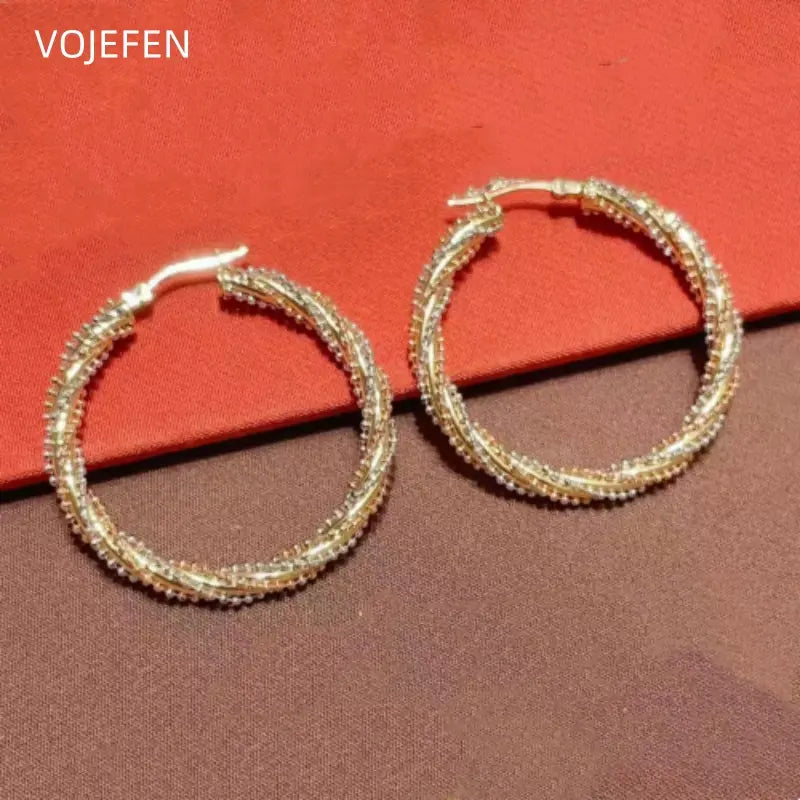 VOJEFEN 18K Gold Hoops Stud Earrings Jewelry Genuine AU750 Yellow/Rose/White Gold Beads Three-Color Italian Crafts Fine Jewelry