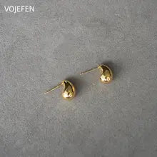 VOJEFEN 18K Gold Mini Drop Earrings AU750 Water Drop Ear Piercing Stud Earrings Jewelry Original Earing Luxury Accessory Certified