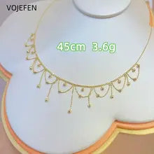 VOJEFEN 18K Gold Necklace Jewelry Genuine AU750 Gold Tassel Chains Neck Link Bohemia Charm Choker Fine Luxury Initial Necklace