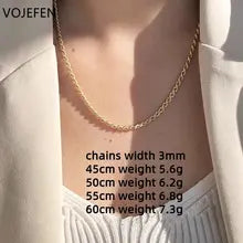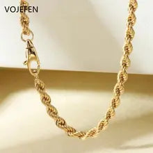 VOJEFEN, 18k Gold, Necklace For Women/Male, Twist Links Rope Chains, Neck Choker, AU750 Real Gold, Fine Jewelry,