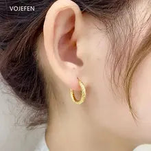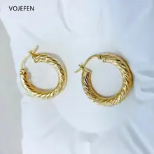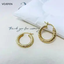 VOJEFEN 18K Gold Earrings Jewelry AU750 Real Gold Rope Hoops Jewel Thickened Twisted Golden Earing Luxury Trends Certificate