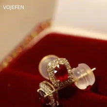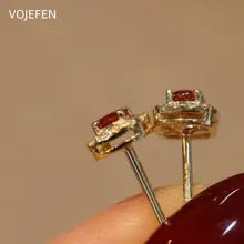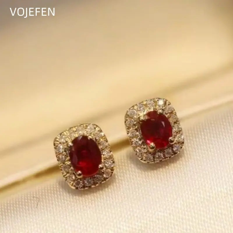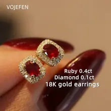 VOJEFEN 18K Gold Ruby Diamond Stud Earrings Original Au750 Gold Earrings Palace Style Fine Personality Delicate Luxury Elegant