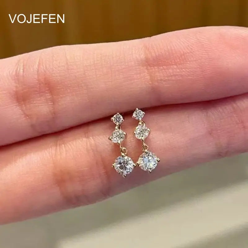VOJEFEN Real 18K Gold Jewelry Pendant Lab Grown Diamond Earring Wedding Jewelry Drop Golden Hanging Girl Earrings Brand Luxury
