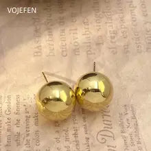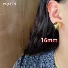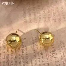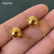 VOJEFEN 18K Gold Balls Earrings AU750 Real Gold 10/16mm Ear Piercing Stud Earrings Jewelry Vintage Original Elegant Stud Earing Certifid