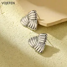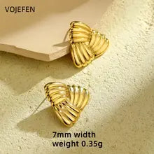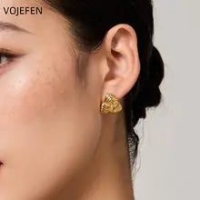VOJEFEN 18K Gold Triangle Earrings Original AU750 Ear Piercing Stud Earrings Elegant Charms Mini Stud Earing Vintage Designer