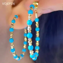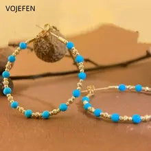 VOJEFEN 18K Gold Turquoise Hoops Earrings Jewelry For Women Original AU750 Gold Rings Earings Vintage Jewellery Trend 2025