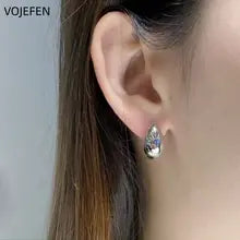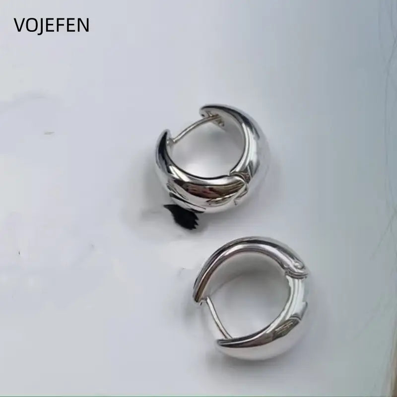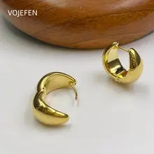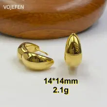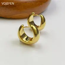 VOJEFEN 18K Gold Hanging Hoops Earrings Original Au750 Gold Women's Celebrity Widened Vintage Jewellery Charms Accessories Certifid